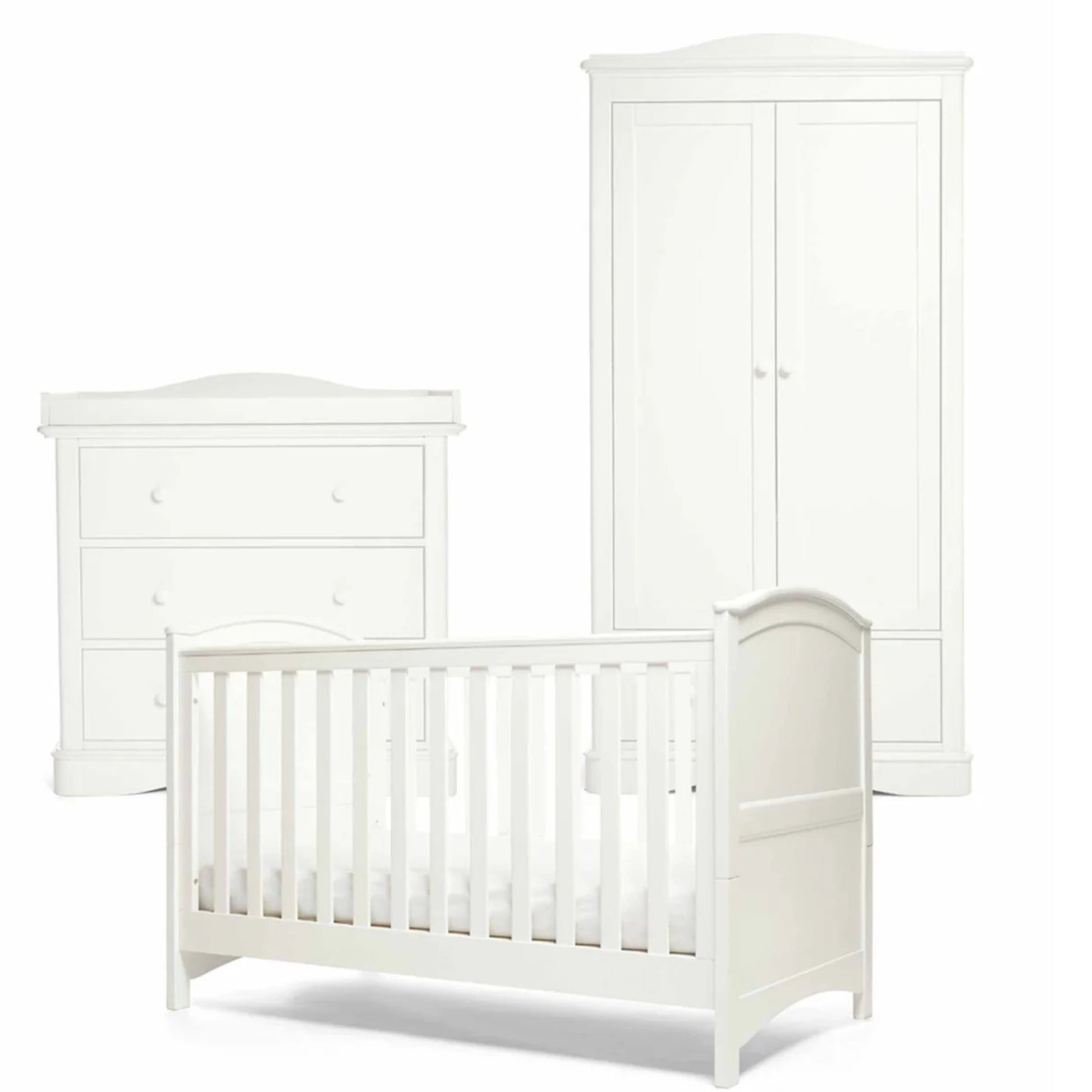 With a full-sized wardrobe, a Cotbed that converts into a toddler bed and a removable changing top on the dresser, this 3-piece set will see your baby from Newborn into toddler years and beyond. With full-sized deep drawers on the dresser and removable rails on the wardrobe, organising all of those outfits is super-easy. And when it's time for a nap, the 2 adjustable cot base heights mean you can easily lay baby down for a snooze without disturbing them.