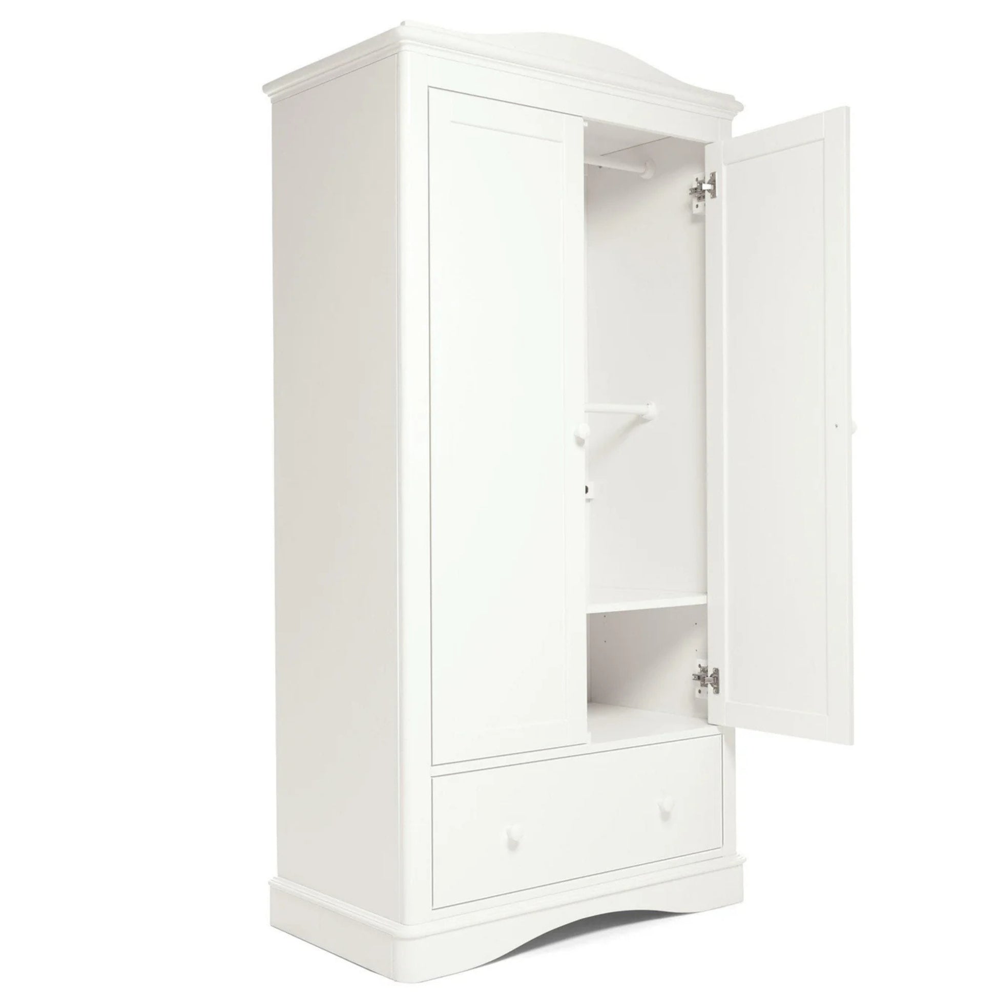 Keep your baby's favourite clothes organised with our Flyn wardrobe. Thanks to its full-sized design and removable rails, you'll have plenty of room to store everything from first outfits to school uniforms. And with a handy drawer as well as an adjustable shelf, you can organise all of those sleepsuits, blankets and spare bedding in a way that works for you.