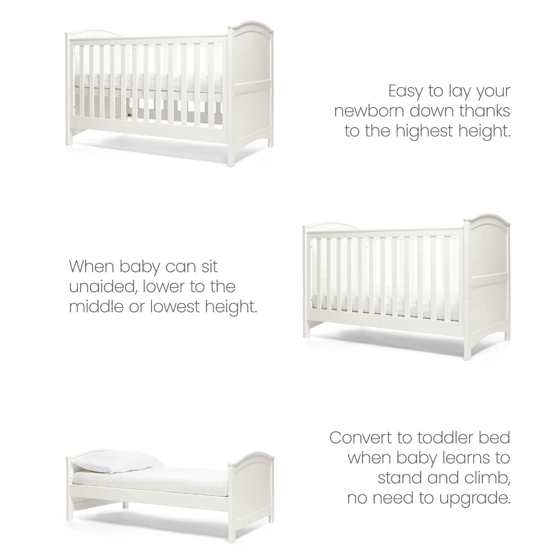 Keep your little one snoozing comfortably for up to 4 years with our Flyn cotbed. It converts into a toddler bed once your baby has grown, and has 2 adjustable cot base heights that make it easier for you to put them down for a nap. And thanks to the 2 teething rails, you'll protect your baby's sore gums as well as your paintwork.
